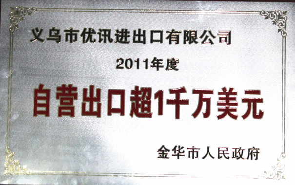 優(yōu)訊進(jìn)出口獲“2011年自營出口超1千萬美元”榮譽(yù)