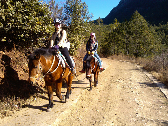 這次旅游,行程安排非常緊湊。大家參觀了峭壁懸崖、鬼斧神工的東巴谷,領(lǐng)略了險(xiǎn)奇美秀、移步換形的玉龍雪山,到訪了如夢(mèng)幻影、疑是仙境的藍(lán)谷,拜謁了古時(shí)土司木老爺?shù)淖≌?,游覽了靜秘神奇、清幽迷人的觀音峽。晚上的間隙,大家還不忘去班布清吧坐上一坐,品著茶香,聽著駐唱歌手的淺吟低唱,感受著古城的萬(wàn)種風(fēng)情。最有趣的,要數(shù)在拉市海濕地騎馬、劃船了。當(dāng)?shù)氐陌锐R沒有人高,且性子溫和,新手騎上去一點(diǎn)也不慌張。大家悠然地騎在馬背上,沿著茶馬古道徐徐遛彎兒,仿佛回到了趕馬幫的生活……