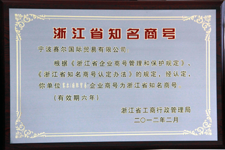 我司歷來(lái)注重品牌建設(shè),堅(jiān)持誠(chéng)信經(jīng)營(yíng),重視社會(huì)責(zé)任,“賽爾”商號(hào)已獲得廣泛的社會(huì)認(rèn)同。獲得“浙江省知名商號(hào)”榮譽(yù),不僅使我司相關(guān)權(quán)益得到了更堅(jiān)實(shí)的保護(hù),而且提升了企業(yè)形象、增強(qiáng)了企業(yè)的市場(chǎng)競(jìng)爭(zhēng)實(shí)力。名列“浙江省知名商號(hào)”榜,對(duì)保護(hù)賽爾的知識(shí)產(chǎn)權(quán)、推進(jìn)品牌建設(shè)、促進(jìn)企業(yè)穩(wěn)步發(fā)展都具有十分重要的意義。