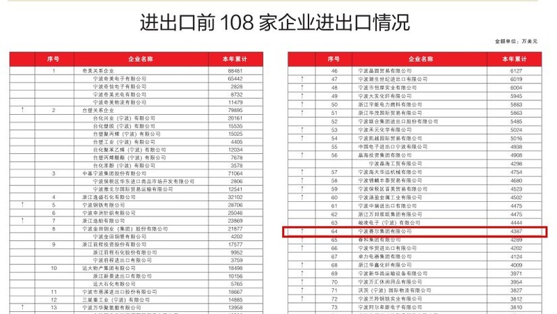 一季度寧波進(jìn)出口108強榜單發(fā)布,我集團排名大幅上升