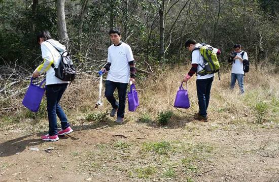 早晨9點(diǎn),我們抵達(dá)活動(dòng)第一站:奉化市北坑嶺古道。北坑嶺古道比較原生態(tài),一路上盡是迷人的風(fēng)景,大家一邊欣賞沿途美景,一邊撿拾沿途的塑料袋、飲料瓶等垃圾。由于前段時(shí)間連日陰雨,山路有些濕滑,男生們紛紛主動(dòng)攙扶著女生做起了“護(hù)花使者”。一路上走走停停,歡快的氣氛一掃旅途的勞累,大家很快抵達(dá)山頂。