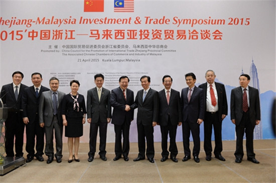 21日,由浙江省貿(mào)促會和馬來西亞中華總商會主辦,浙江省國際商會和吉隆坡暨雪蘭莪中華總商會承辦的“2015’中國浙江-馬來西亞投資貿(mào)易洽談會”在吉隆坡開幕。開幕式上,浙江省委書記、省人大常委會主任夏寶龍作主旨演講,馬來西亞首相對華特使、馬中商務(wù)理事會主席丹斯里•黃家定,馬來西亞貿(mào)工部副部長李志亮,中國駐馬來西亞大使黃惠康等分別致辭。中馬相關(guān)政要和企業(yè)家350余人出席了開幕式。