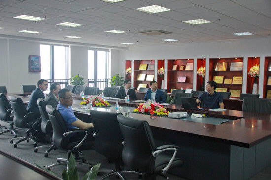 在參觀樣品間后,方總陪同Michal Polanski秘書長參觀了集團(tuán)寧波研發(fā)園辦公區(qū)并進(jìn)行了座談交流。高岳進(jìn)出口葉陳冬向來訪貴賓簡要介紹了集團(tuán)發(fā)展歷程、企業(yè)架構(gòu)、業(yè)務(wù)模式、企業(yè)文化等情況。