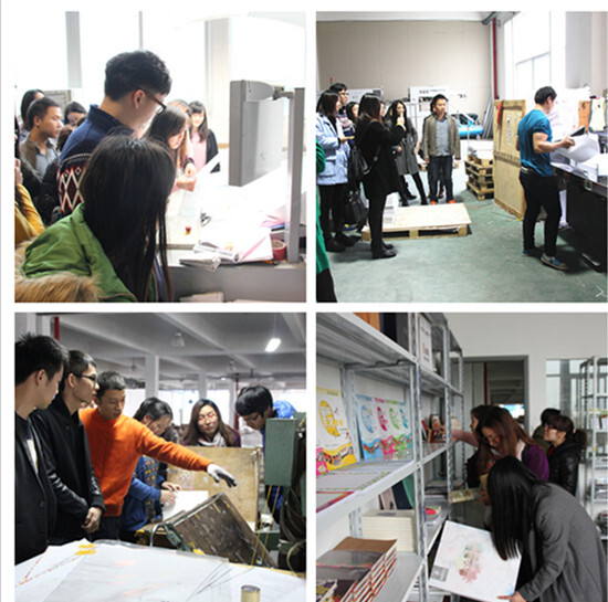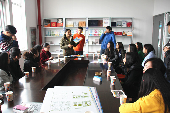 在暢意印刷有限公司負(fù)責(zé)人王東明、魏麗鋒的帶領(lǐng)下,大家首先參觀了印刷車間,實(shí)地察看了大型印刷、燙金和切割設(shè)備的工作過程,公司負(fù)責(zé)人王總現(xiàn)場(chǎng)為大家介紹了包裝印刷的基本知識(shí)。隨后,在印刷公司樣品室,公司負(fù)責(zé)人魏總向大家介紹了吊牌、紙卡、不干膠、包裝袋、說明書、樣本冊(cè)等相關(guān)印刷流程和工藝,同時(shí)介紹了包裝紙張的分類、特點(diǎn)及用途選擇、紙張色彩識(shí)別技巧等專業(yè)知識(shí),并不時(shí)解答現(xiàn)場(chǎng)提出的問題。