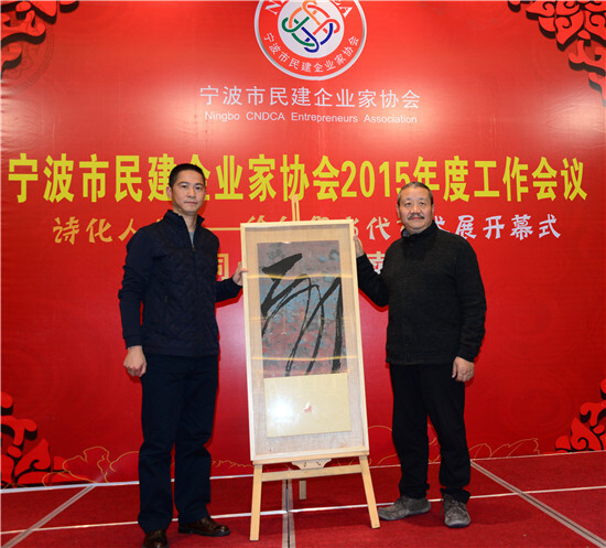 會議還舉辦了中國藝術(shù)研究院中國版畫院副院長、寧波大學(xué)潘天壽藝術(shù)設(shè)計院院長、寧波同心書畫院院長徐仲偶先生的“詩化人生”當代藝術(shù)展開幕式,徐仲偶院長捐贈兩幅作品和其他幾位寧波本土藝術(shù)家捐贈的作品一道參與現(xiàn)場慈善義拍,拍賣所得善款捐贈給寧波民建85周歲以上老會員。義拍現(xiàn)場的火爆氣氛和室外的陰冷天氣形成了鮮明的對比,民建企業(yè)家們愛心熱情高漲,紛紛舉手搶拍,贏得現(xiàn)場陣陣掌聲。賽爾集團徐平炬總裁以6.5萬元拍得現(xiàn)場最貴一幅作品,再次展現(xiàn)了賽爾集團對民建老年會員的敬意與愛心。