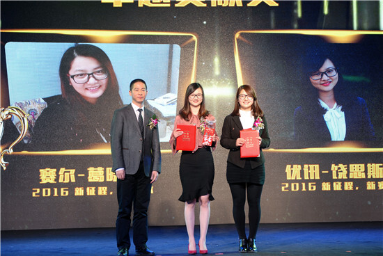 大會首先表彰了集團2015年度優(yōu)秀員工。集團運營決策委員會分別為每位獲獎?wù)哳C發(fā)了獎杯、證書和獎金。賽爾國貿(mào)葛曉青、優(yōu)訊進出口饒思斯憑借優(yōu)異業(yè)績摘得集團“卓越貢獻獎”;賽爾國貿(mào)沈孝蘭等34人榮獲集團“優(yōu)秀業(yè)務(wù)獎”;集團財務(wù)管理部陳萍等19人榮獲集團“最佳服務(wù)獎”;賽爾國貿(mào)袁勝男等轉(zhuǎn)正一年內(nèi)表現(xiàn)突出的15位新員工代表榮獲集團“新星獎”。70余位獲優(yōu)人員是優(yōu)秀賽爾人的杰出代表,讓我們向優(yōu)秀致敬!為佳績喝彩!
