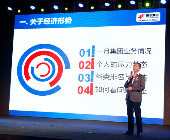 表彰結(jié)束后,徐平炬總裁向全體與會同事分享了他一年來的所思所悟。徐總從當下經(jīng)濟形勢入手,在企業(yè)家精神、公司競爭力、品牌傳播與自媒體建設(shè)、投資布局、薪酬結(jié)構(gòu)、互聯(lián)網(wǎng)影響等方面作了簡明扼要的闡述。雖然外貿(mào)行業(yè)面臨嚴峻形勢,但賽爾集團仍然在2015年實現(xiàn)了穩(wěn)健發(fā)展,2016年1月份更以近7000萬美元創(chuàng)下月度出口額歷史新高,對于2016年企業(yè)發(fā)展,有壓力但更有信心。徐總說,每個企業(yè)都需要敢為人先、勇于開拓、能擔當?shù)钠髽I(yè)家精神,當前集團各子公司總經(jīng)理都是行業(yè)認可的優(yōu)秀企業(yè)家,各子公司業(yè)務(wù)部門負責人在某種意義上也是企業(yè)家,賽爾集團還要在內(nèi)部培養(yǎng)出更多具有企業(yè)家精神的團隊領(lǐng)導(dǎo)者,從而推動企業(yè)的長遠健康發(fā)展。當前,集團競爭力主要體現(xiàn)在獨特的經(jīng)營模式、綜合的軟實力、集團化的高效運作和較強的行業(yè)影響力,這種差異化的競爭力仍需堅持并進一步鞏固提升。徐總表示,近年來集團先后投資成立了優(yōu)貿(mào)供應(yīng)鏈、環(huán)宇港通和優(yōu)游國旅,探索了出口跨境電商B2C業(yè)務(wù),搭建了在線外貿(mào)商務(wù)平臺“賽爾在線”,下階段將著手布局進口跨境電商B2B業(yè)務(wù),這些投資都是圍繞外貿(mào)主業(yè)所作的延伸布局和有益探索,這些投資和布局必將進一步提升集團的外貿(mào)綜合服務(wù)能力。徐總還與大家分享了互聯(lián)網(wǎng)對當今這個時代和企業(yè)發(fā)展影響的看法,并建議大家低配人生和物質(zhì)要求,努力工作,提升自己,跟上公司發(fā)展的步伐,在上升通道中實現(xiàn)人生的追求。